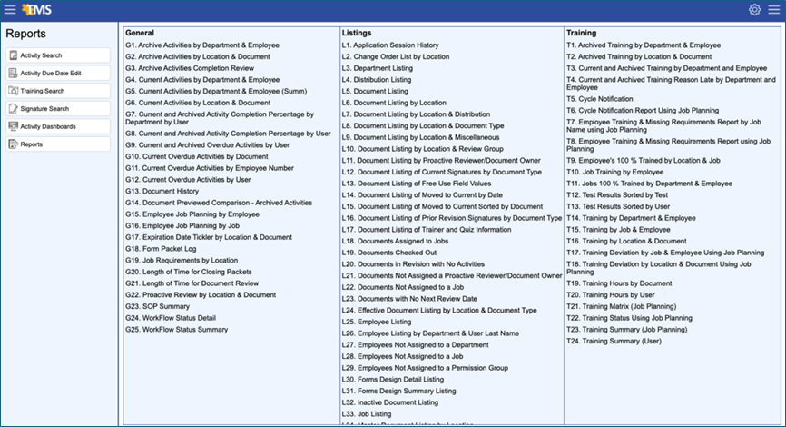 Finally, Activity Dashboards allow allows a TMS administrator or manager to quickly view open review activities and overdue activities.